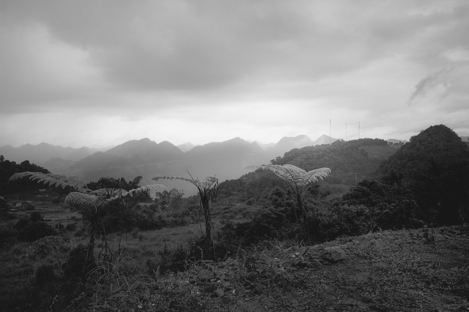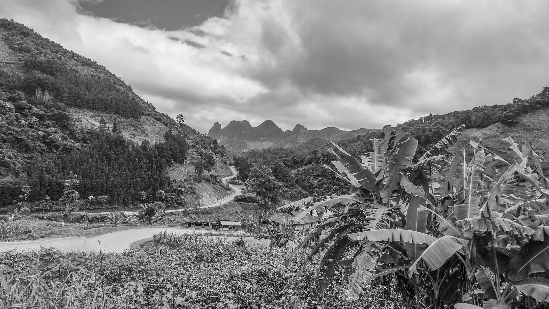 Die Route folgt dem Lo Fluss, der sich zwischen Bergen auf schmalen Straßen schlängelt. Wir kamen durch abgeschiedene Dörfer mit Stelzenhäusern der H`Mongs, Dao´s und Tay´s. Es ging auf breiten Kurven immer höher hinauf in die Berge wieder vorbei an einem Wasserfall die Wolken hingen hoch am Himmel.