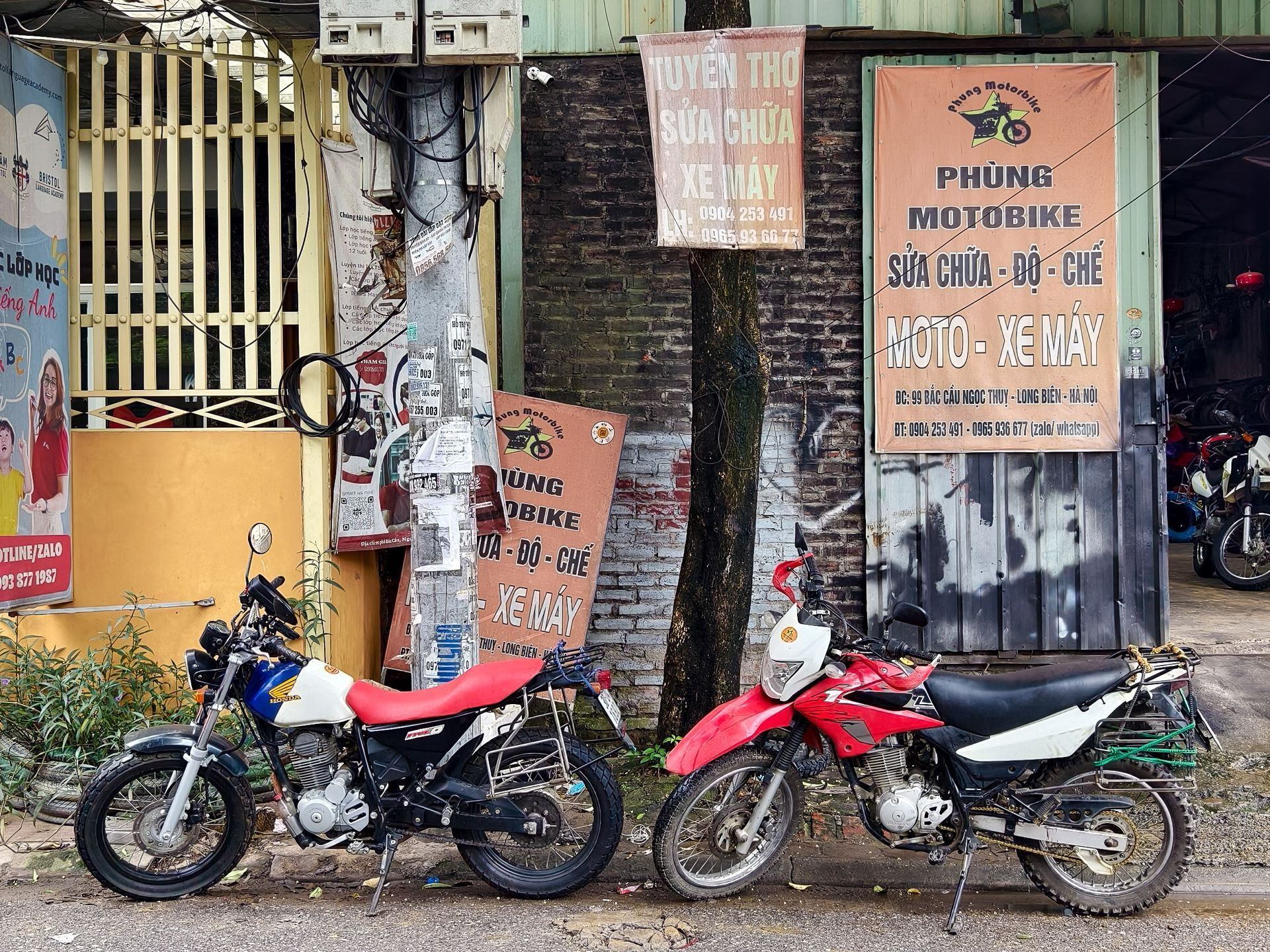 Um 8 Uhr haben wir unsere Motorräder abgeholt. Eine Woche kostet 230 €. Diese waren wie bestellt 2 Stück 190ccm und eine Honda 230 ccm. Gut zum Aufsteigen und fast zu niedrig. Das Gepäck haben wir auf den Rücksitz mit Expandern gepackt und los ging das Abenteuer. Zum Glück war da Warehouse mit den Mopeds bereits ein wenig ausserhalb von Zentrum Hanoi´s. Kein Fehler, da der Verkehr in der Stadt unpackbar ist.