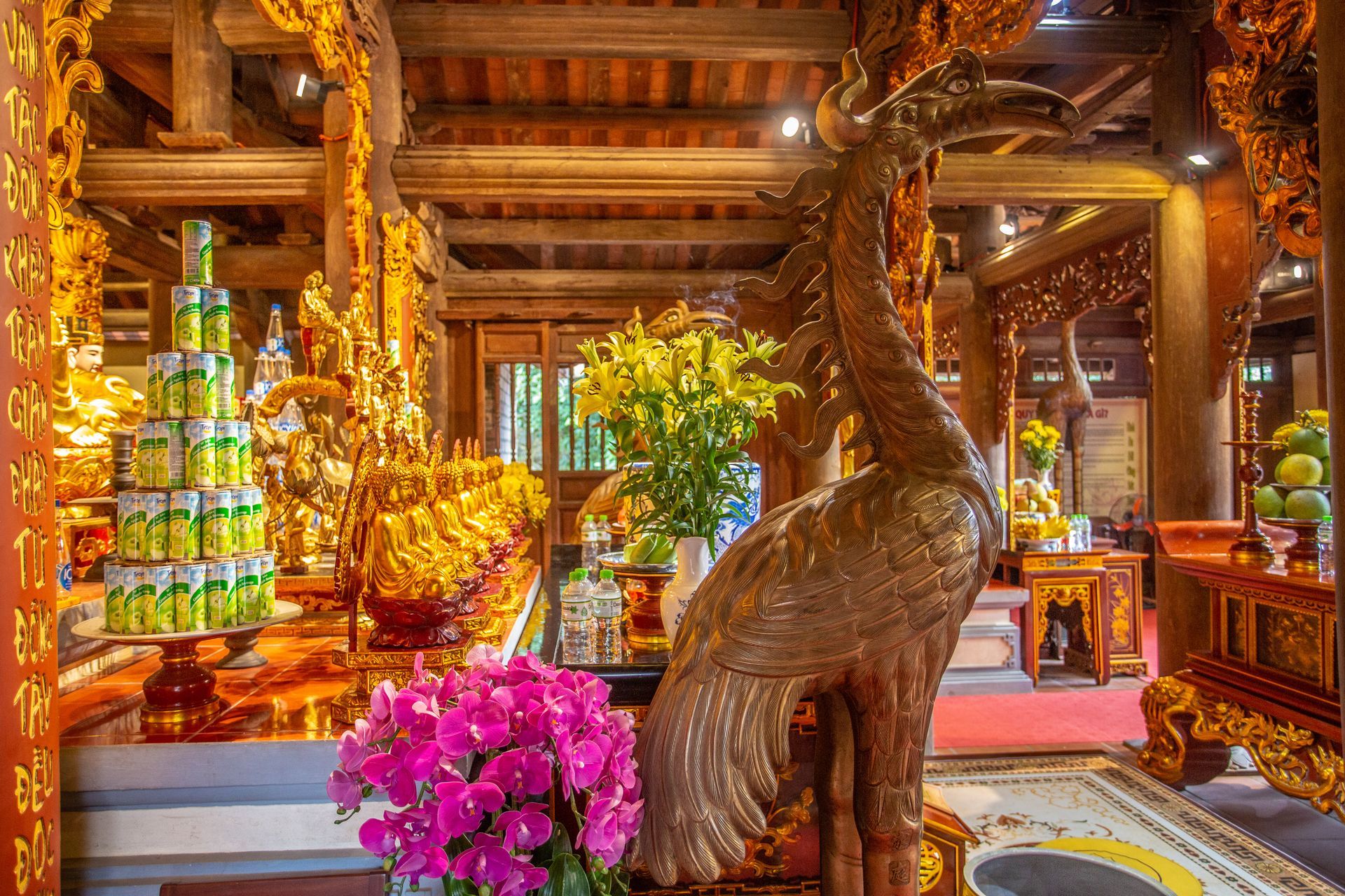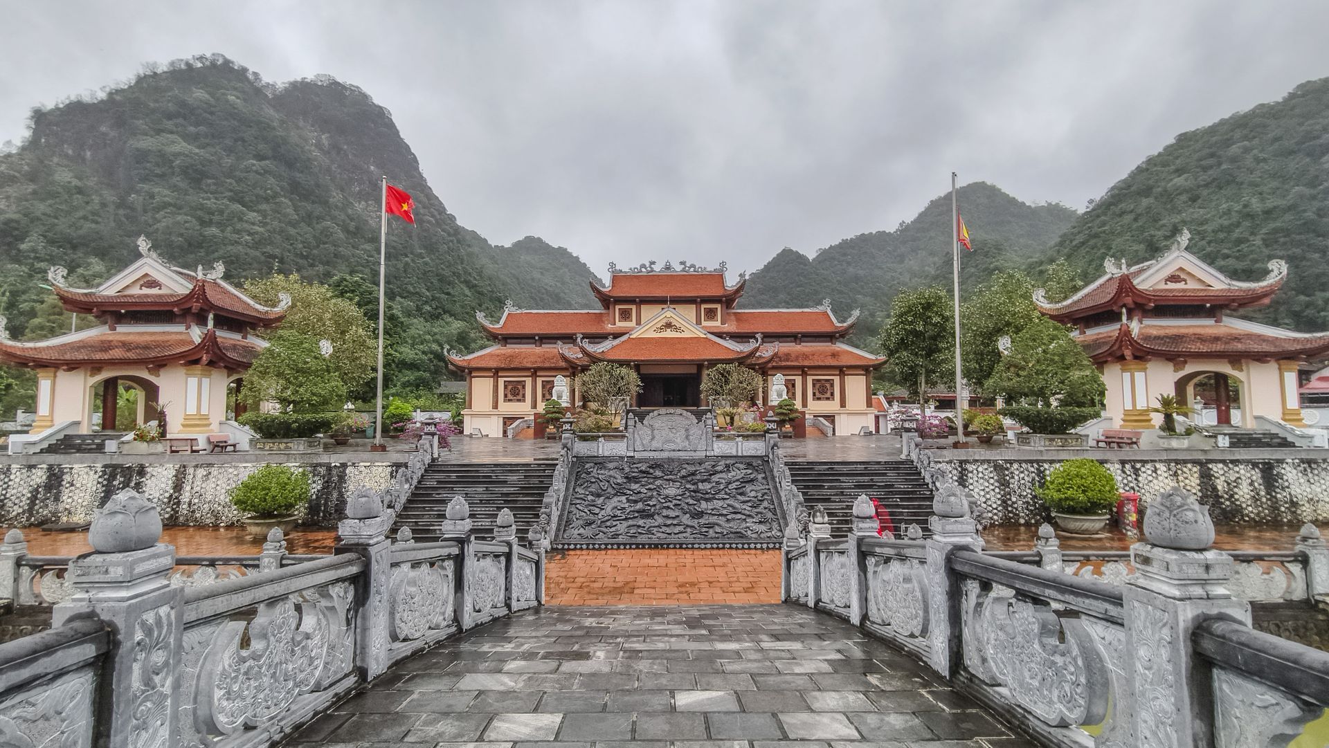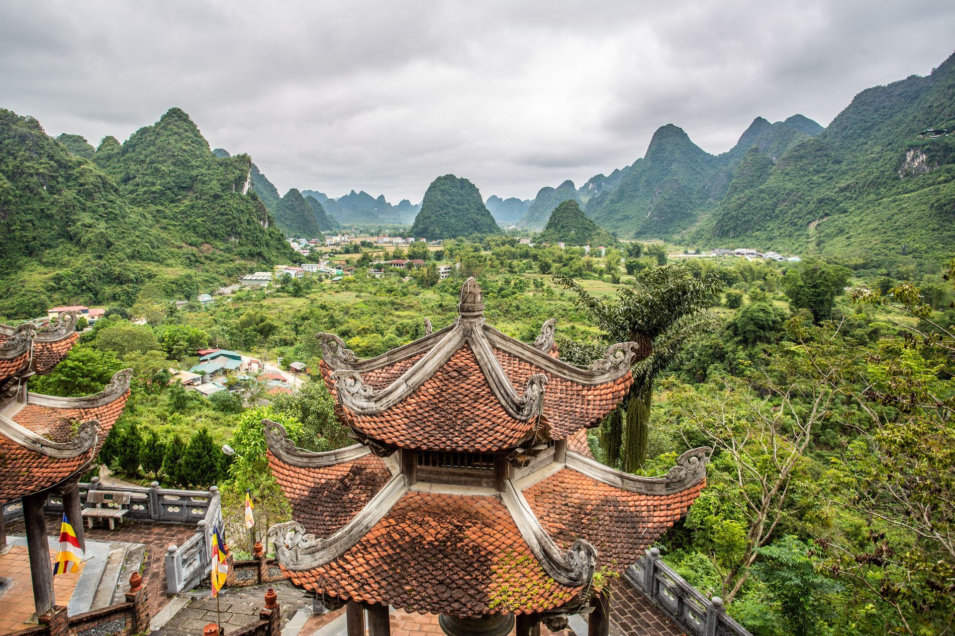 Was uns aber noch mehr beeindruckt hatte war die gegenüberliegende Tempelanlage. Ein absolutes Muss mit fantastischer Aussicht ins Ban Gioc Tal